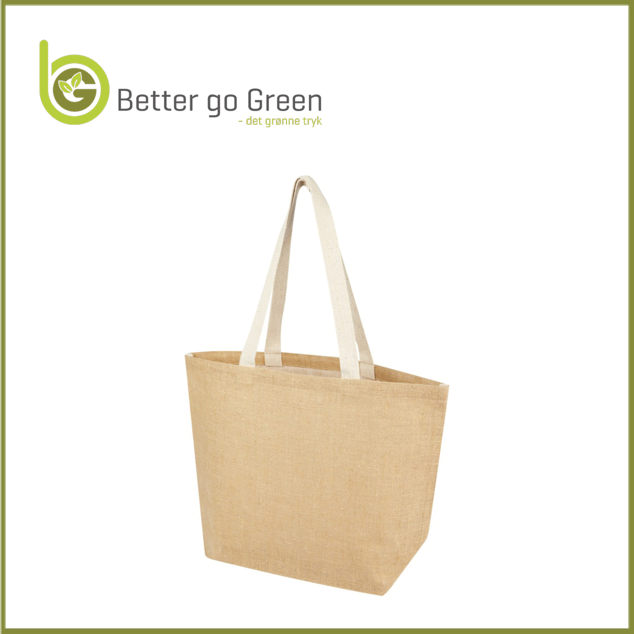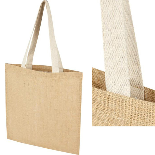 - Materiale: 232 g/m² jute. Kantbånd og hanke i bomuld